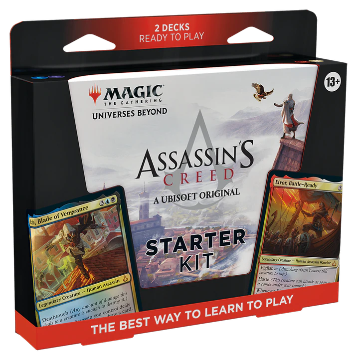 Assassin's Creed ® emerges from the shadows to join Magic: The Gathering ! Your community will freerun through ancient locales with their favorite Assassins and take a leap of faith—the past is theirs to explore. With Collector Boosters, your players get direct access to the coolest cards from the set, with each booster packed with special treatments.