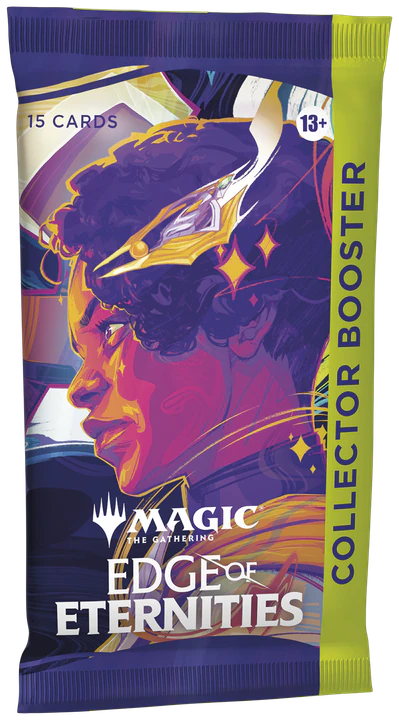 At the edge of the known Multiverse, a star system teeters on the brink of disaster. Chart a course through Sothera and explore distant planets, wield dazzling magic, and wage war with alien factions. Just steer clear of the unstable supervoid at the center of the system—unless you choose to harness the vast chaotic energies within! Collector Boosters gather all the coolest cards and foil treatments in one place! Each interstellar booster contains Rares and/or Mythics, Traditional Foils, a Borderless basic land, and more. Spacefaring travelers may encounter even more beautiful foils and a vast expanse of eye-popping lands. You could also find the headliner card—the most collectible pull of all!