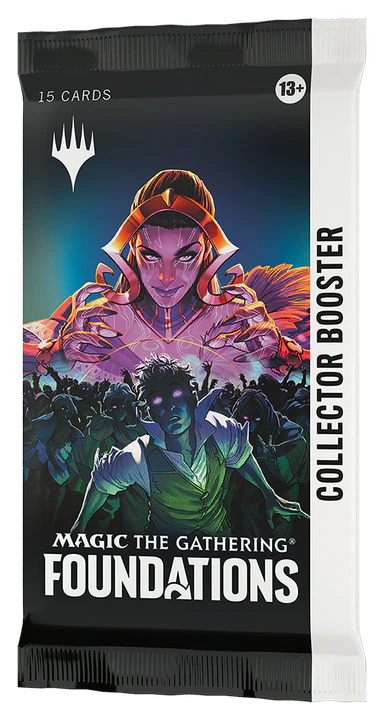 The best time for your community's first Magic game is now. Dive into Foundations , and experience quintessential Magic: The Gathering by playing with and collecting cards selected to give every player the advantage. Whether a past, present, or future Magic player, Foundations invite you to share your spark! Collector Boosters gather all the coolest cards and foil treatments in one place! Packs may contain Special Guests, Mana Foils, Extended-Art cards, plus borderless cards and mighty Rares and Mythics well-positioned to become your collection’s new crown jewels.