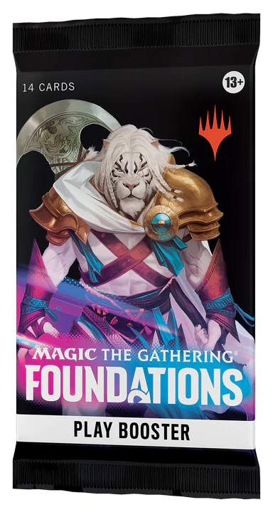 The best time for your community's first Magic game is now. Dive into Foundations, and experience quintessential Magic: The Gathering by playing with and collecting cards selected to give every player the advantage. Whether a past, present, or future Magic player, Foundations invite you to share your spark! Play Boosters are the best way to discover all that Magic has to offer. Construct a deck out of your favorite color combinations, draft packs with friends, and open gorgeous Borderless cards—plus you can find a foil in every booster.