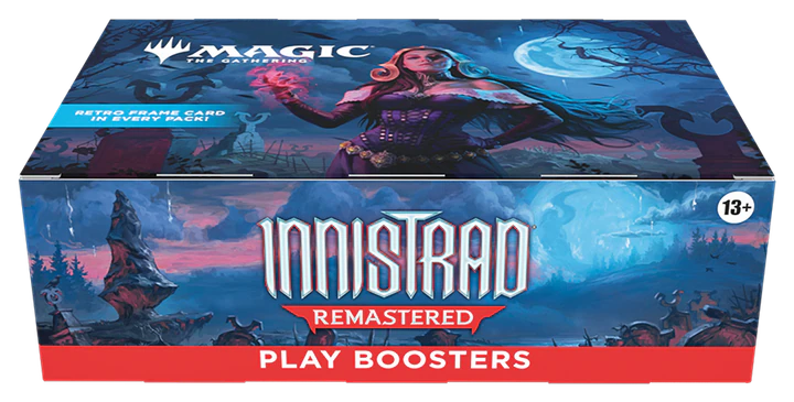 Return to the plane of glorious gothic horror and dig up fan-favorite reprints from every Innistrad set ever made with Innistrad Remastered . Cackle with delight at Showcase treatments from Innistrad’s past and behold all-new borderless art that’s hauntingly boo-tiful. Plus, every booster arrives nostalgia-packed with a Retro frame card! Play Boosters are the best way to explore all the gothic horror world of Innistrad has to offer. Play Boosters are balanced for Limited play, perfect to open just for fun, and contain at least one foil card and one Retro frame card. A full booster display will let your players sink their teeth into the very best of Magic's spookiest setting.