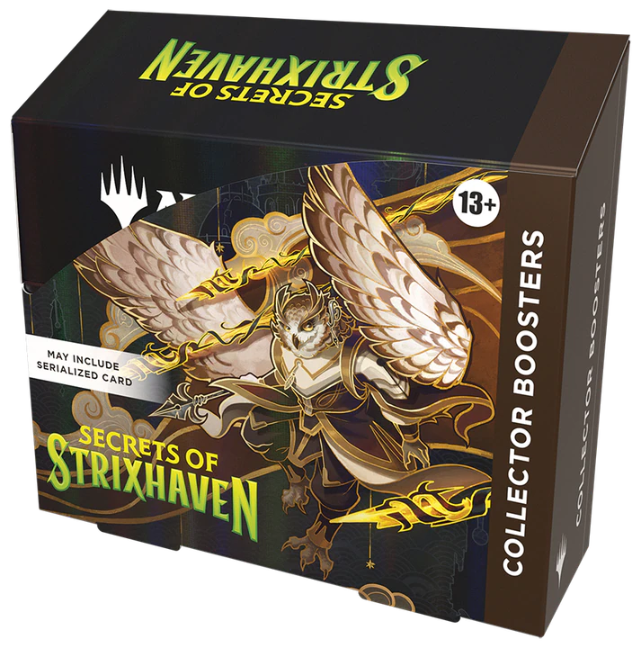 Secrets of Strixhaven Collector Boosters are the ultimate way to add unique card styles to your spellbook. Each contains multiple rares and/or mythic rares, tons of foils, a full-art basic land card, and Mystical Archive cards that feature striking new art and showcase frames. You may even discover delights deep in the back of the stacks, like Collector Booster-exclusive card styles, special foil treatments, or the ultimate find: a serialized headliner card. More about Secrets of Strixhaven Return to Strixhaven, Magic 's beloved mage school, and uncover years of mysteries as you explore its hallowed halls and beyond. The five colleges are back, each with their own unique look, feel, and magic focus. As you increase your skills, make academic discoveries and work to prove your college is the best, but beware—second-year knowledge comes with a side of increased danger.