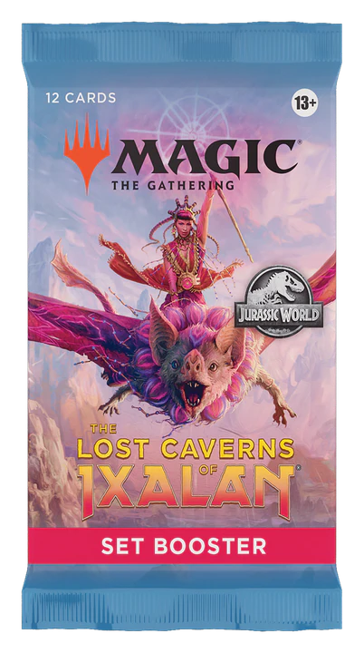 In The Lost Caverns of Ixalan , your players will face an adventure like never before, discovering long-lost ruins, ancient civilizations alive and well, and fan-favorite creatures running rampant. Dig into the heart of Ixalan with a piece of prehistory for every play style. Set Boosters are the best packs to open just for fun, containing gorgeous art cards and the opportunity to explore the set.